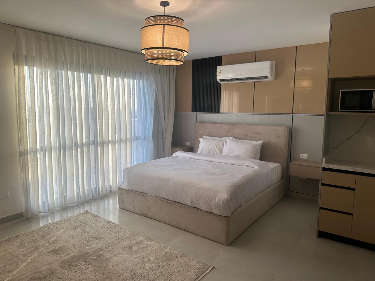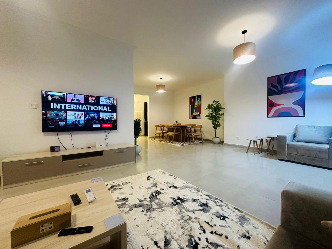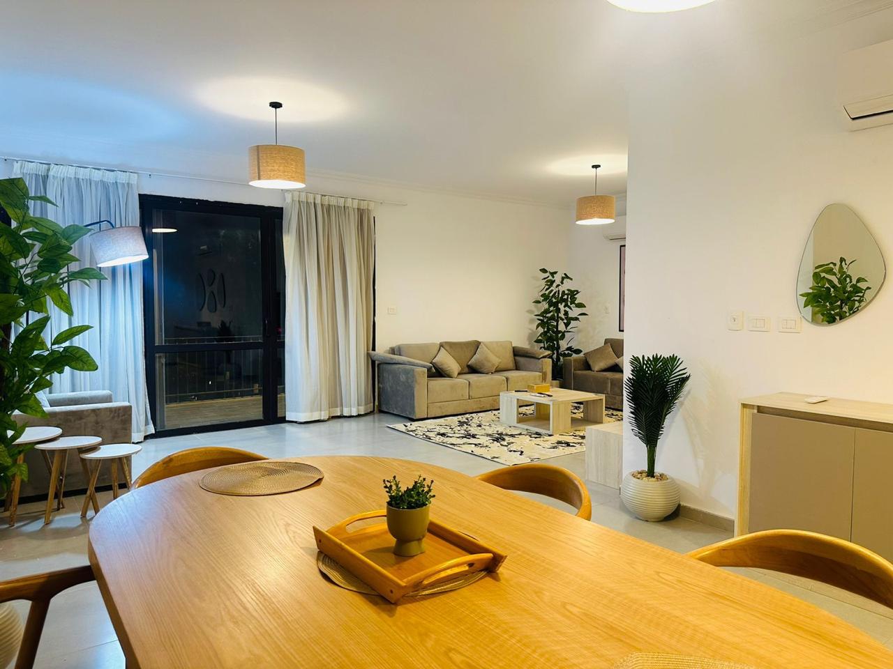 Spacious 3-bedroom, 2-bathroom apartment in Eastown, New Cairo, fully furnished with elegant décor and premium finishes. Features a bright reception, stylish dining space, modern kitchen, and cozy bedrooms with soft bedding and ample storage. Located in a prime gated compound by SODIC with landscaped gardens, pools, gym, and 24/7 security. Walking distance to AUC and close to Cairo Festival City and Downtown Katameya. Perfect for families, groups, or business travelers.