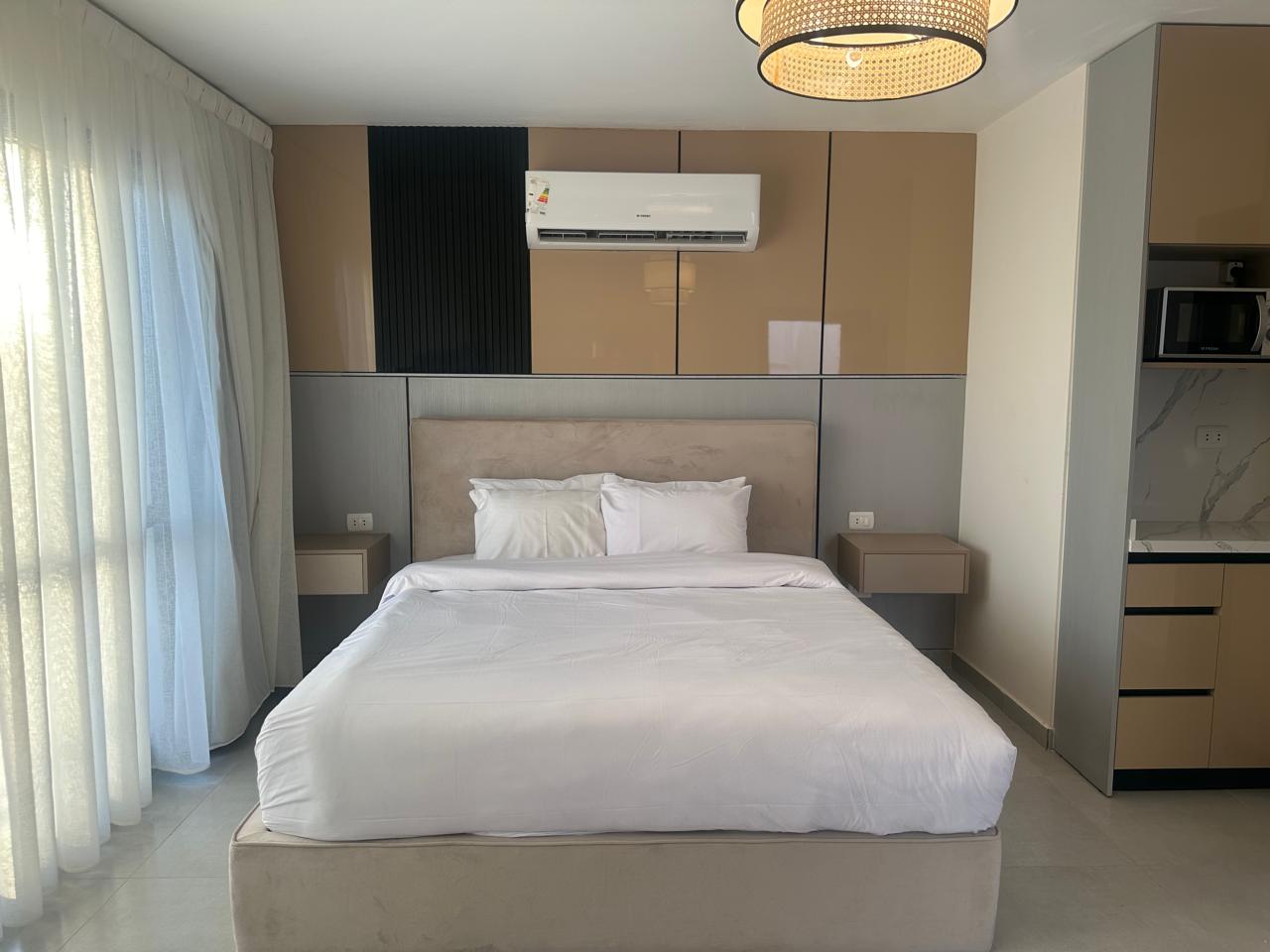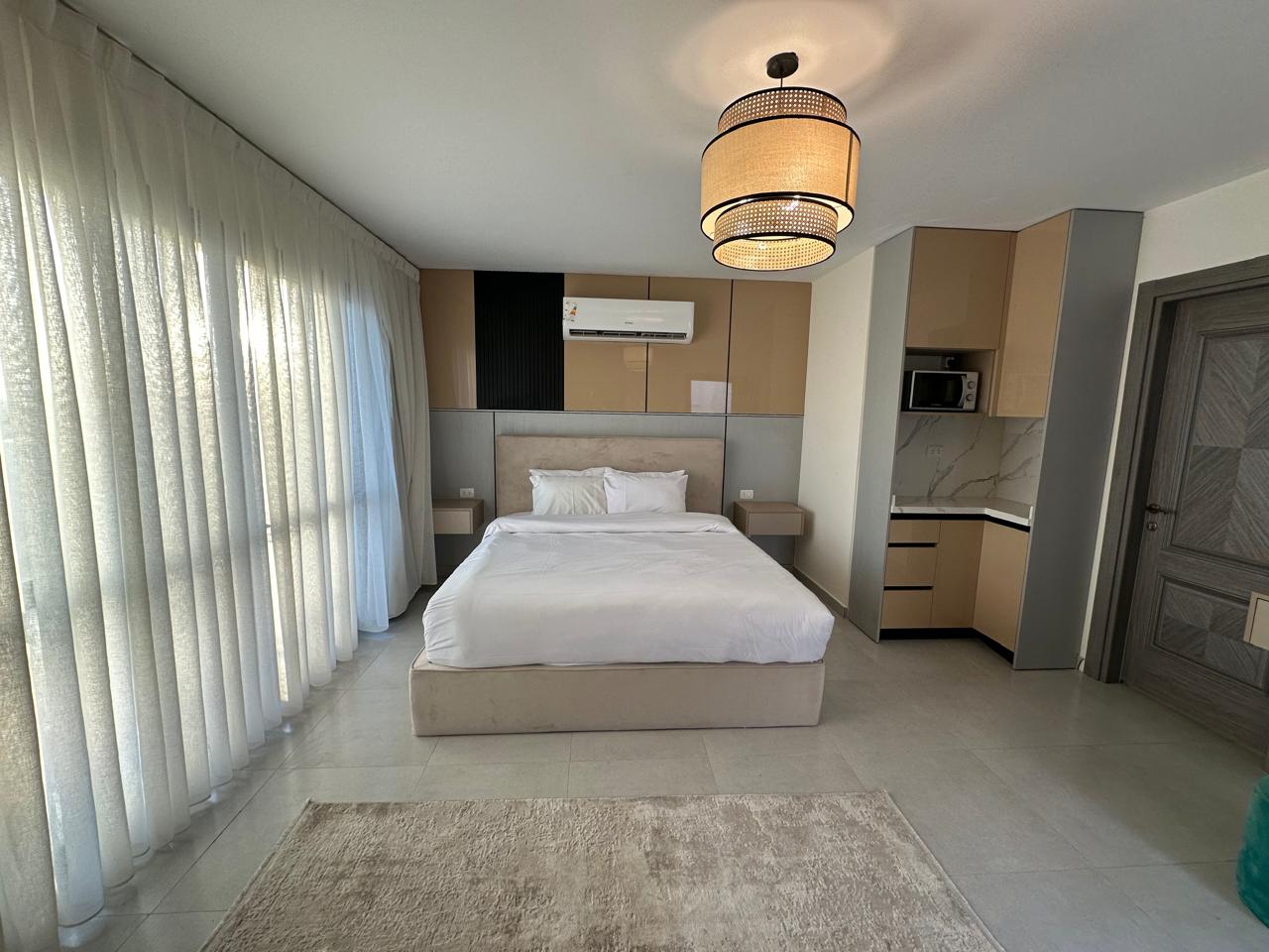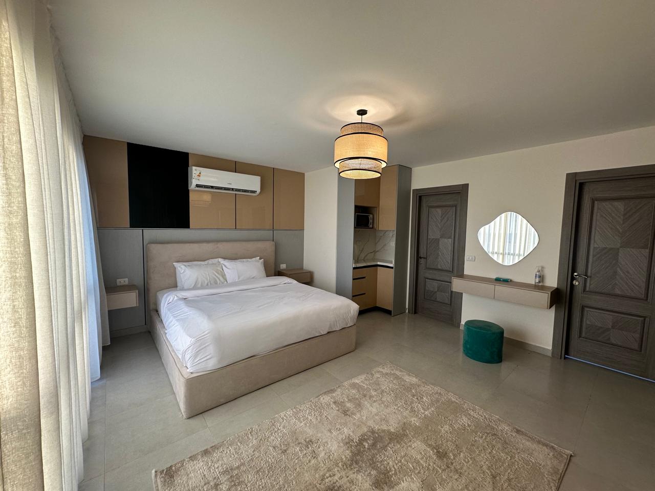 Spacious 3-bedroom, 2-bathroom apartment in Eastown, New Cairo, fully furnished with elegant décor and premium finishes. Features a bright reception, stylish dining space, modern kitchen, and cozy bedrooms with soft bedding and ample storage. Located in a prime gated compound by SODIC with landscaped gardens, pools, gym, and 24/7 security. Walking distance to AUC and close to Cairo Festival City and Downtown Katameya. Perfect for families, groups, or business travelers.